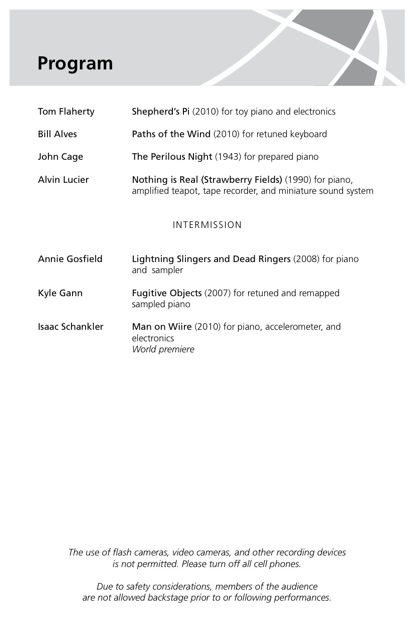 for piano, amplified teapot, tape recorder, & Miniature sound system