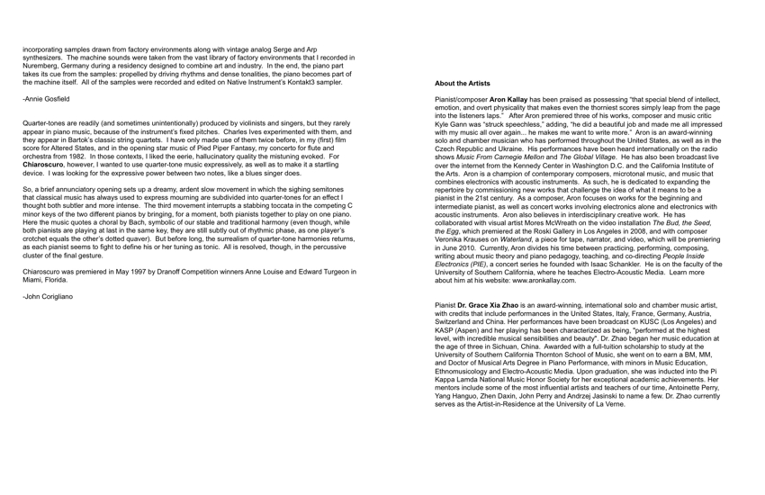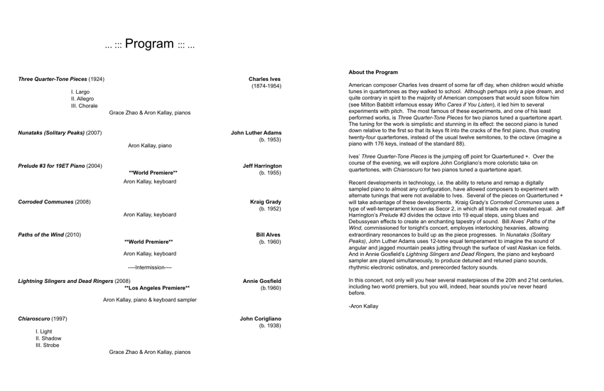 An exploration of music for re-tuned, re-mapped, and re-imagined pianos and keyboards.